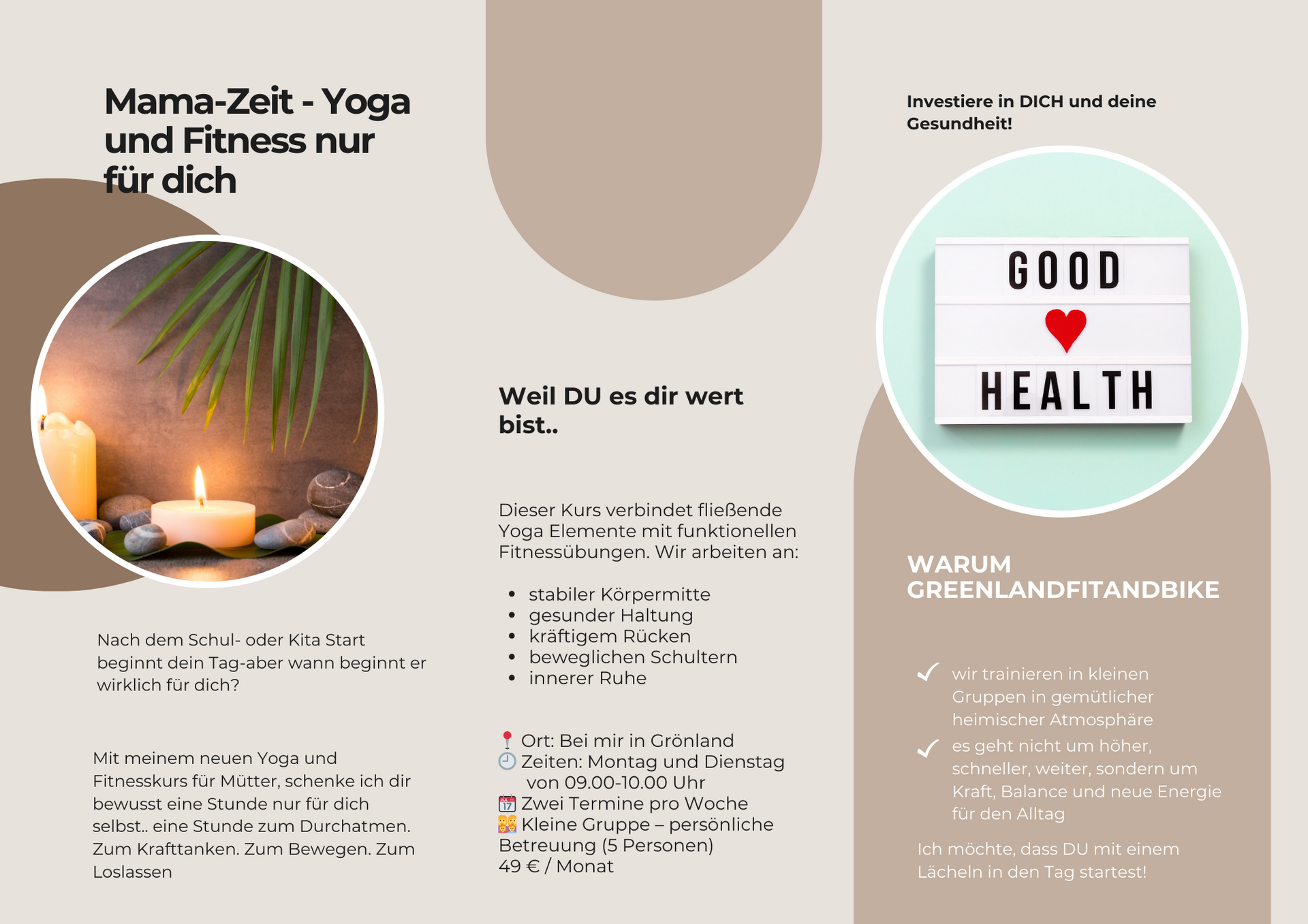 Ich weiß aus meinem privaten Umfeld, dass eure ME TIME am Tag sehr begrenzt bis gar nicht vorhanden ist. Damit sich dieses ändert und ihr auch weiterhin für eure Kinder fit und mental gesund bleibt, möchte ich euch die Möglichkeit bieten, morgens nach Kita und Schulbeginn, den Tag mit einer Stunde nur für euch zu beginnen. Keine Ausreden, denn DU BIST DIR WICHTIG!
